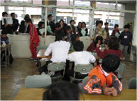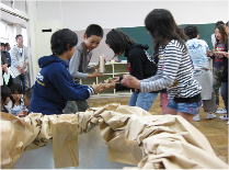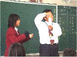 | 恵我南小学校 6年1組 授業者 長尾 彰太郎 松原第七中学校 1年1組 授業者 三添 和浩 コラボレーション授業 「そう そう! それ それ!! 〜伝えて 探して 見つけよう〜」 厳然として存在する「小中の段差」、中学校1年生になると「いじめ」「不登校」が増えるという一般的な現実を目の前にして・・・松原七中校区の小中が協働して一つの授業に取り組んだ。小中二つのクラスをまっ二つに分けた小中合同2クラスを、小学校・中学校の教員が指導をする。中学生の小学生への welcome の気持ちを込めたエクササイズが「コピーゲーム」だった。コピーするのは「七中への歓迎ポスター」。七中の先生の写真や、メッセージを全くおなじにコピーする。「だれだ、お腹が出ている男の人は?」「ひょっとして、その先生こんなふうにしてなかった?」「そう そう! それ それ!」小学生は中学生といっしょにエクササイズに取り組んで、松原七中のことにより親しみがわいてきたのだった。 指導案 |