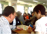 次のエクササイズは、グループワークです。かなり、手の込んだ仕掛けをして、グルピングを短時間にすませました。今日、今の時点で「自分のことを、どう呼んでほしいか」という名札づくりからはじめました。いつもの事ですが、「キャサリン」が一人いました。自分の呼び方一つにも、その人の個性がでるものです。