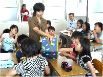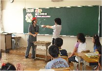 恵我小学校 2年2組 「もっともっときいてみよう」 授業者 藤本 眞住 会話がはずむには、相手に対する興味と心地よい質問が大切です。良い質問は、話し手にパワーを与えます。「きのう、遊びに行きました。」とお題を語ってくれた人にたいして、質問していく班には、8つの質問パワーカードが与えられました。「いつ○○ですか?」「どこで○○ですか?」・・・質問に答えた仲間は、正面にプロジェクターに映し出されたハッピーものさしに、ハッピーを貯めていきます。さあ、こんなにたまったハッピーをクラスのハッピー貯金に入れておきましょう。。 指導案 |