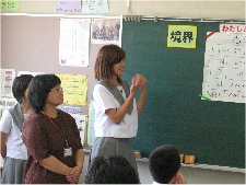 松原第七中学校 3年1組 「境界って何?」 授業者 井上 享子 川口 剛史 人によって、人との距離感は全然違います。話をするときこれ以上近づいちゃダメって距離を調べてみましょう。全然違いますね。しかも、相手によっても変わってきます。次に、先生たちのロールプレイを見て下さい。川口くん、ずいぶん享子さんに侵害されてますね。川口くん、どこまで言っちゃうんですか。突然イライラしながら入ってきた享子さん。川口くんはおどおどするばからり。自分なら、これらの行為のどこが境界ですか? ワークシートに書いてみましょう。 次の時間は、君たちがつくるロールプレイです。 指導案 |