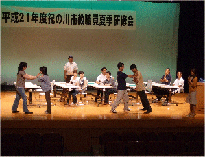 | 2009年8月10日、和歌山県紀の川市教育委員会主催の夏期研修会に呼ばれてファシリテーション を行いました。大阪府外からは、一昨年夏の京都府宇治市立木幡中学校以来の依頼でした。会場は 紀の川市役所にある田園ホールというところで、紀の川市・岩出市の中学校の先生方200人を越える 参加でした。 会場がホールということだったので、ファシリテーションするには非常に難しい点があるのですが、会場 から10人の先生方に登壇していただき、模擬授業というかたちで進めていきました。模擬授業においては、 ストレス・マネジメントを中心に進めて行きました。風船が割れるというストレスを受けながら、問題に挑戦し ていくパニックゲームなどに取り組むことで、ストレスへの気づきの大切さなどを体験していただくことが、 できたのではないか、と思っております。会場の先生方の参加意識も素晴らしく、あっという間の2時間を 過ごさせていただきました。 ファシリテーション:曽和幸子、深美隆司 |