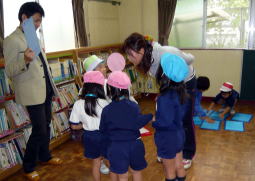 | 2008年10月31日 恵我幼稚園園内研究会 講師:常磐会短期大学 准教授 卜田真一郎 先生 研究テーマ 子どもの育ちに寄り添える人間関係づくりの保育創造をめざして =4・5歳児のかかわりにおいて、互いに育ち合えるものをめざして= 研究保育 一緒に遊ぶの楽しいね 〜異年齢ペアで魔法の国で遊ぼう〜 |