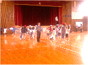 「ジャンふえ」 ジャンケンでなかまをふやす 6年生が赤白帽をかぶる 1年生をつれて「オニ」(赤帽)ペアが白帽ペアにタッチします 1年生どうしがジャンケンします 白帽が負けると赤帽の仲間になります |