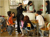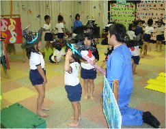 | 恵我幼稚園 りす・きりん組 異年齢交流 「いっしょにあそぶの楽しいね」 授業者 藤定マサミ 阪本 真保子 幼稚園のあいあいタイムは4歳児と5歳児の異年齢交流です。4歳児と5歳児がペアになり「まほうの国」へ遊びに行きます。「まほうの国」には6つの遊びのコーナーがあり、そこには中学生のファシリテーションリーダーが支援に入っています「まほうの国」での学びはどんなものになるのでしょう。 指導案 |