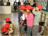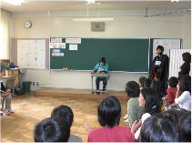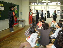 | 恵我南小学校 1年2組 「いっしょにあそぼ パート2 〜どうしたの?〜」 授業者 金子 真梨 「あいあい魔女」が、いつものように、恵我南小の1年2組を訪れています。「あいあい魔女」は、ともだちと仲良くできるためのアイテムをいつも持ってきてくれるのです。今日のアイテムは何だろう? 遊びに入れない子に声をかけるためのアイテムでした。みんな、声をかけるようになれるかな? 指導案 |