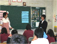 | 恵我南小学校 6年1組 授業者 長尾 彰太郎 松原第七中学校 1年1組 授業者 三添 和浩 コラボレーション授業 「そう そう! それ それ!! 〜伝えて 探して 見つけよう〜」 厳然として存在する「小中の段差」、中学校1年生になると「いじめ」「不登校」が増えるという一般的な現実を目の前にして・・・松原七中校区の小中が協働して一つの授業に取り組んだ。小中二つのクラスをまっ二つに分けた小中合同2クラスを、小学校・中学校の教員が指導をする。中学生の小学生への welcome の気持ちを込めたエクササイズが「コピーゲーム」だった。コピーするのは「七中への歓迎ポスター」。七中の先生の写真や、メッセージを全くおなじにコピーする。「だれだ、お腹が出ている男の人は?」「ひょっとして、その先生こんなふうにしてなかった?」「そう そう! それ それ!」小学生は中学生といっしょにエクササイズに取り組んで、松原七中のことにより親しみがわいてきたのだった。 指導案 |
