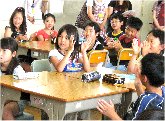 恵我小学校 4年1組 「楽しく伝えよう!」 授業者 山内 美和子 「なあいた、ないた」「なあにがないた」「ねこ」「ニャー」、「ちょうちょ」「・・・笑」おかしいですね。相手の言葉に反応して声を出すって、おもしろい。今日は、すごろくを使ってトーキングをしましょう。でも、ふつうのすごろくトーキングではありません。中には、「動物カード」や「チャンスマス」もあります。ゲーム性たっぷりのすごろくトーキングをみんなで楽しみましょう。遊びながら、みんなのことが知れるなんて、最高です。 指導案 |