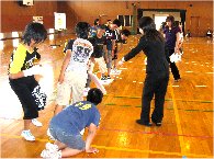 恵我南小学校 1年2組 「まねっこまねっこ」 授業者 小池 雄子 ウォーミングアップは「ポケモンジャンケン」です。「ピカチュー」「火とかげ」「ぜにがめ」をグーチョキパーに見立て、からだいっぱい使ってジャンケンです。いち早く先生に勝ちましょう。次は、「まねっこ、まねっこ かお」というと相手の顔をまねします。みんなが気持ちよくまねできることが、ルールなのです。友だちの動きをよく見て、まねをしましょう。まねすることや、まねされることで、友だち関係がさらに深まっていきます。 指導案 |