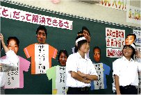 松原第七中学校 2年1組 「もめごとだって解決できるさ」 授業者 山本 啓子 高橋 俊也 次の土日で、どこかへ遊びに行こうと思いたった仲間たち。でも何か様子が変です。ケンカをしていた二人がいたのです。一人は、絶対にいっしょには行きたくないって言ってるし、他の人たちはクラブの試合やら、宿題をするだとか、習い事があるだとか、自分の都合を言っています。はたして、全員で遊びに行けるのでしょうか。班のみんなで解決法を考え、一人ひとりを説得にかかりましょう。 指導案 |
