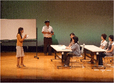 | 2009年8月10日、和歌山県紀の川市教育委員会主催の夏期研修会に呼ばれてファシリテーション を行いました。大阪府外からは、一昨年夏の京都府宇治市立木幡中学校以来の依頼でした。会場は 紀の川市役所にある田園ホールというところで、紀の川市・岩出市の中学校の先生方200人を越える 参加でした。 会場がホールということだったので、ファシリテーションするには非常に難しい点があるのですが、会場 から10人の先生方に登壇していただき、模擬授業というかたちで進めていきました。模擬授業においては、 ストレス・マネジメントを中心に進めて行きました。風船が割れるというストレスを受けながら、問題に挑戦し ていくパニックゲームなどに取り組むことで、ストレスへの気づきの大切さなどを体験していただくことが、 できたのではないか、と思っております。会場の先生方の参加意識も素晴らしく、あっという間の2時間を 過ごさせていただきました。 ファシリテーション:曽和幸子、深美隆司 |
