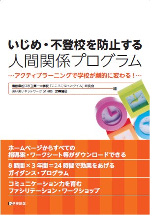 書籍紹介(主体的・対話的な深い学びを得る授業) 「子どもも先生も生き生きできる、 そんな授業をしてみたい!!」 それがこのプラン集にあります → 例 「スーパー新聞ジグソー」 実践支援、実践相談(無料)いたします。学級、学年、学校を問いません。「学級づくり」から「実践報告・研究指定等のための基盤づくり」まで、メールまたは電話(info@aiainet-hrs.jp、080−3117−7954 深美)でお気軽にご相談ください。 ダウンロードページ(Word 版) へのリンク (現在パスワード不要にしています) ダウンロードページ( 一太郎版 )へのリンク (現在パスワード不要にしています) 支援プラン(指導案)、ワークシート、ふりかえり用紙、ふりかえり掲示物のデータをダウンロードできます。 カリキュラムマネジメントの資料→こちらへ 書籍(拡大画像)にダウンロードページへリンクするためのパスワードを記載しています。(現在パスワード不要にしています) 「いじめ・不登校を防止する 人間関係プログラム」 〜アクティブラーニングで学校が劇的に変わる!〜 松江市立第一中学校「こころ あいあいネットワークofHRS 深美隆司 編 (B5版144ページ)2000円+税 学事出版 2016.2発刊 なかみ、ちょっと見、できます 中学校・高等学校ではそのまま実施することができます。 小学校高学年(5年・6年)で取り組む場合は・・・こちらへ 注目!「清水中学校は劇的に変わった!!」 この書籍に関するご質問・ご感想→ブログリンク 出版元の学事出版にて品切れ中です amazonにのみ在庫・中古本があります わたくしのほうに少々在庫(新品)がありますので2000円(送料込み)でお譲りします。ご希望の方はメール・電話(info@aiainet-hrs.jp/080-3117-7954)でご連絡ください。送付先にレターパックライトで送らせてもらいます。現物到着後、メールを指定しますので(gmail)にamazonギフト券2000円分を送付してください。 人間関係づくりの授業に関するご質問・ご意見コーナーのページへ(ブログ) |